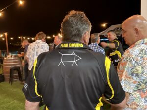 Members wore commemorative shirts for the anniversary event, featuring the ‘bucket shop dog’ which has become a symbol of Peak Downs miners’ tenacity and humour over decades.