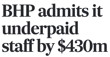 BHP has been left red-faced after admitting they underpaid mineworkers $430 million since 2010 due to wrongly deducting leave on public holidays.