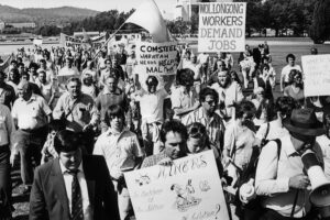 The Kemira sit-in sparked widespread community action that was to lead to the storming of Federal Parliament by thousands of workers and their supporters on 26 October 1982 when Prime Minister Malcolm Fraser refused to meet representatives of the miners and steel workers facing massive job losses. Fred Love was one of the first protesters through the doors of Parliament House.